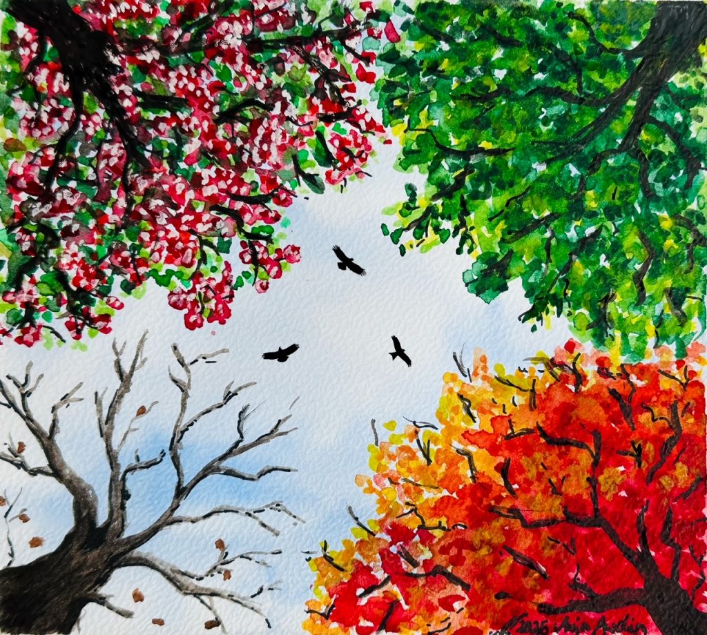 Es gibt keine bestimmte Stilrichtung: Zeichnung mit schwarzem Feinliner, Acryl Malerei, Alcohol-Ink-Technik, Aquarell oder digitale Bildbearbeitung am Tablet, auch die Kombination verschiedener Techniken. Jedes Jahr gestaltet sie eine Geburtstagskarte, die sie digital an ihr Umfeld versendet. Auch Oster- und Weihnachtskarten entstehen auf diese Weise. Das letzte Projekt war die Spende zweier Bilder für den „Catlendar“ der Streunerhilfe Aschaffenburg sowie ein eigener Jahreskalender 2026.